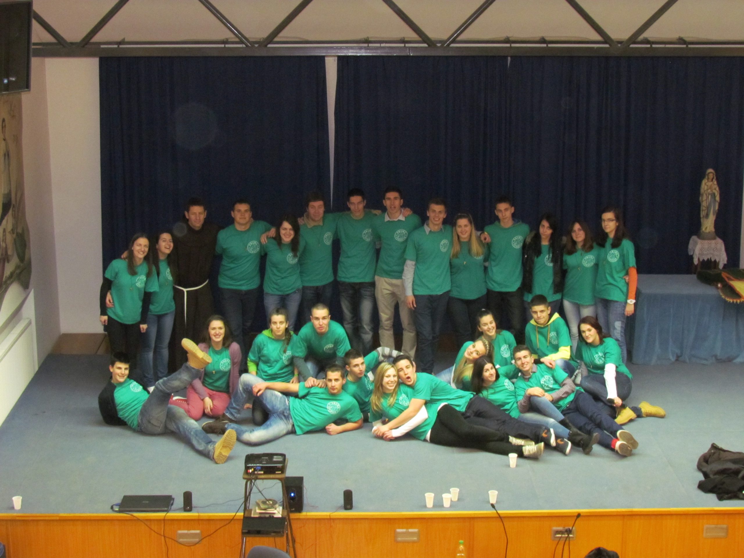 Nakon danih obećanja, ispunjenih srca i s osmijehom na licima druženje se nastavilo. Premijerno je prikazan skeč pod nazivom: „Muško i žensko stvori ih“ sa svima nam bliskom ljubavnom tematikom povodom blagdana sv. Valentina (skeč pogledajte ovdje: http://www.youtube.com/watch?v=zzfVuRskK-w). Bio je to spoj humora, plesa, pjesme, improvizacije i naravno, smijeha. Kako uz puno srce i osmijeh na licima trbuh ne bi ostao prazan, druženje se nastavilo uz bogatu zakusku. Logičnim slijedom ovaj divan susret ali i dan, završili smo uz gitare, pjesmu i ples.