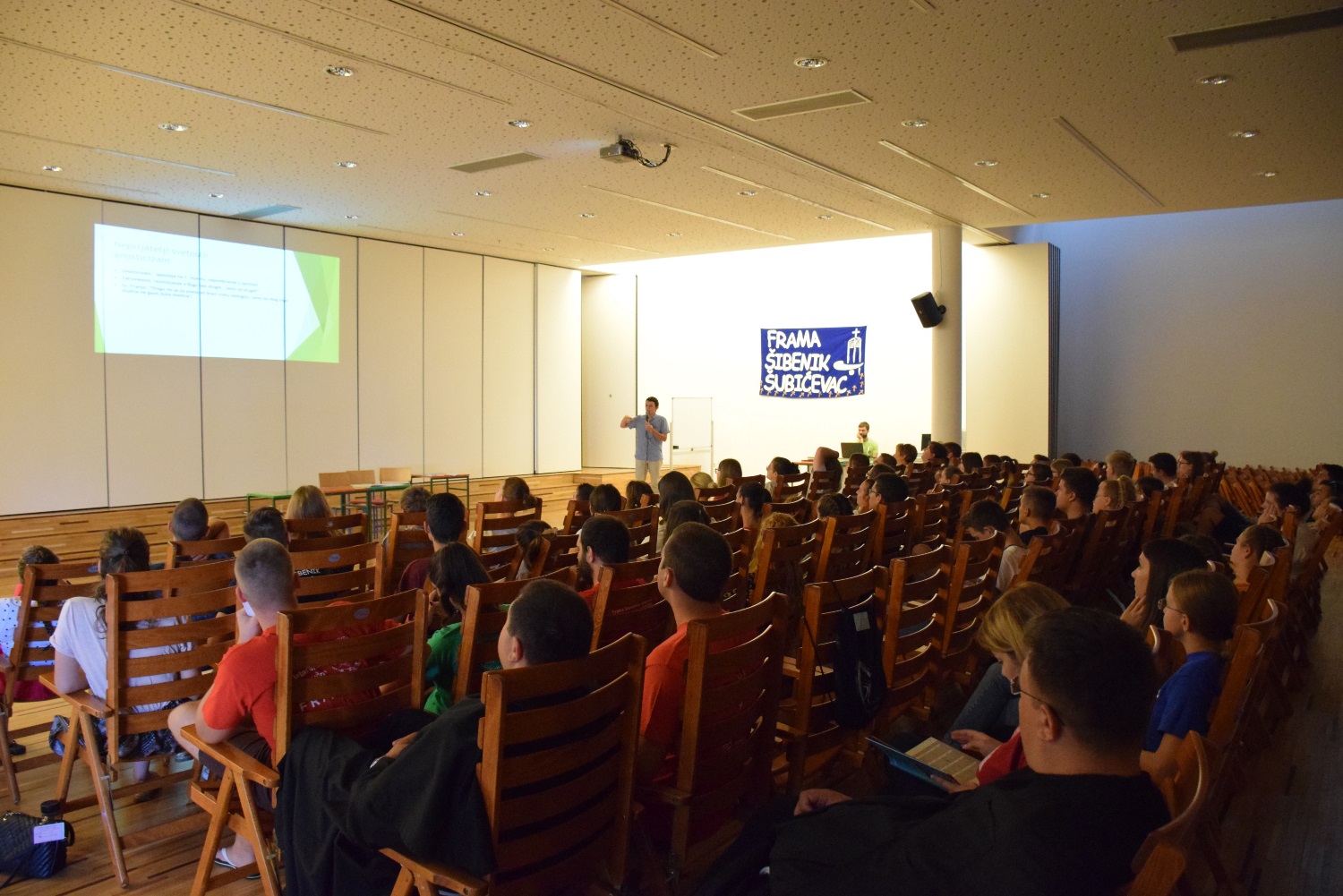 Radosni i ispunjeni vratili smo se na ručak nakon kojega su se framaši iz različitih područja podijelili u dvije skupine te su tako, u radu među područnim bratstvima, izmijenili iskustva, podijelili probleme i jedni drugima udijelili savjete. Potom smo se zaputili u obilazak Katedrale svetog Jakova, gdje smo se susreli sa šibenskim biskupom mons. Tomislavom Rogićem, a misno smo slavlje te večeri imali u šibenskom svetištu Svetog Frane. Po povratku na Šubićevac, večere i kratkoga zabavnog programa – ne zaboravimo da je ovo klasični framaški susret – evaluirali smo ovogodišnji seminar i izmolili večernju molitvu Časoslova.